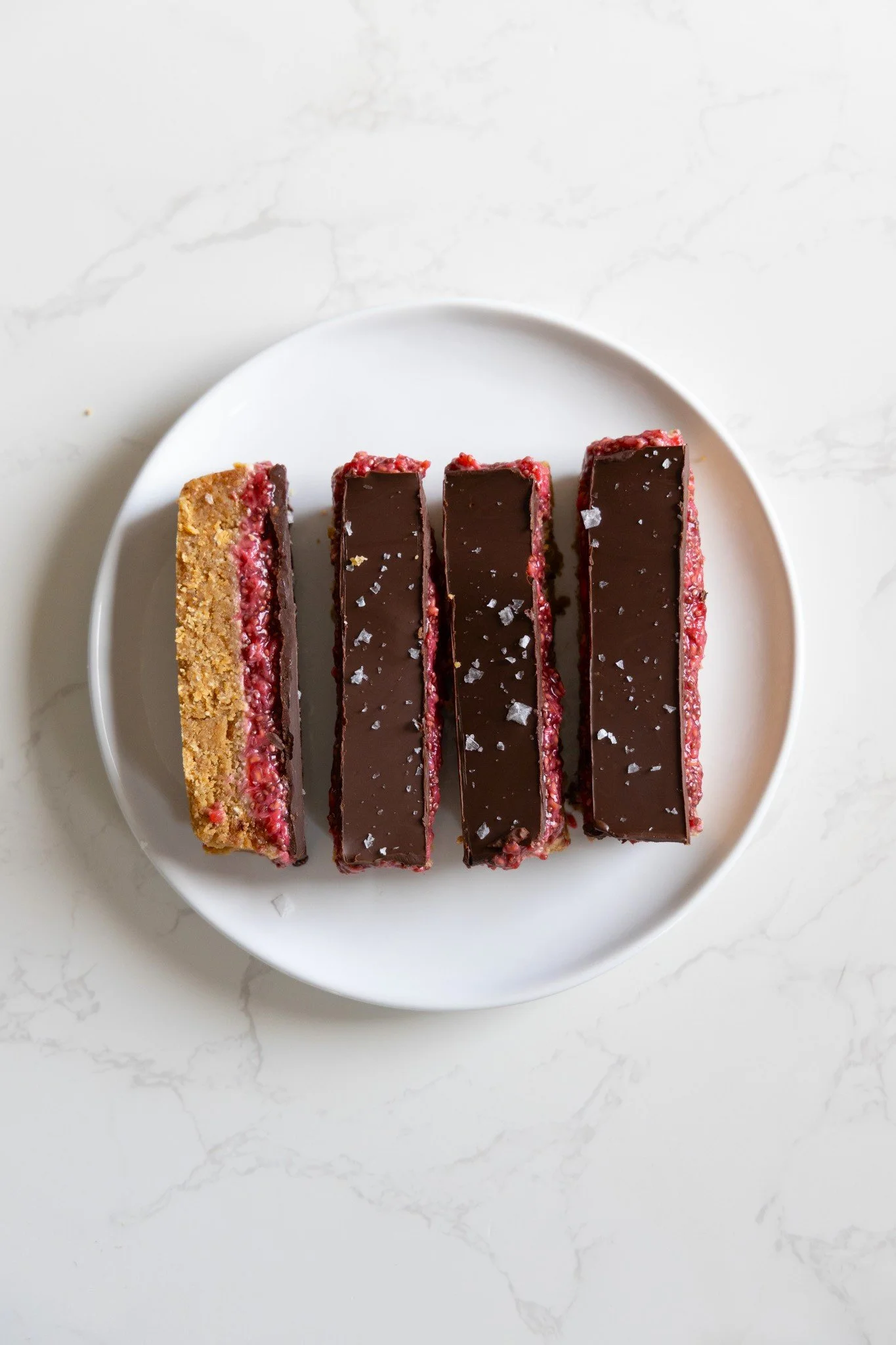 Peanut butter and jam is a classic for a reason and these protein bars will not disappoint. They are the perfect pick me up snack in the afternoon and they freeze well, so you can always have a high-protein snack on standby.