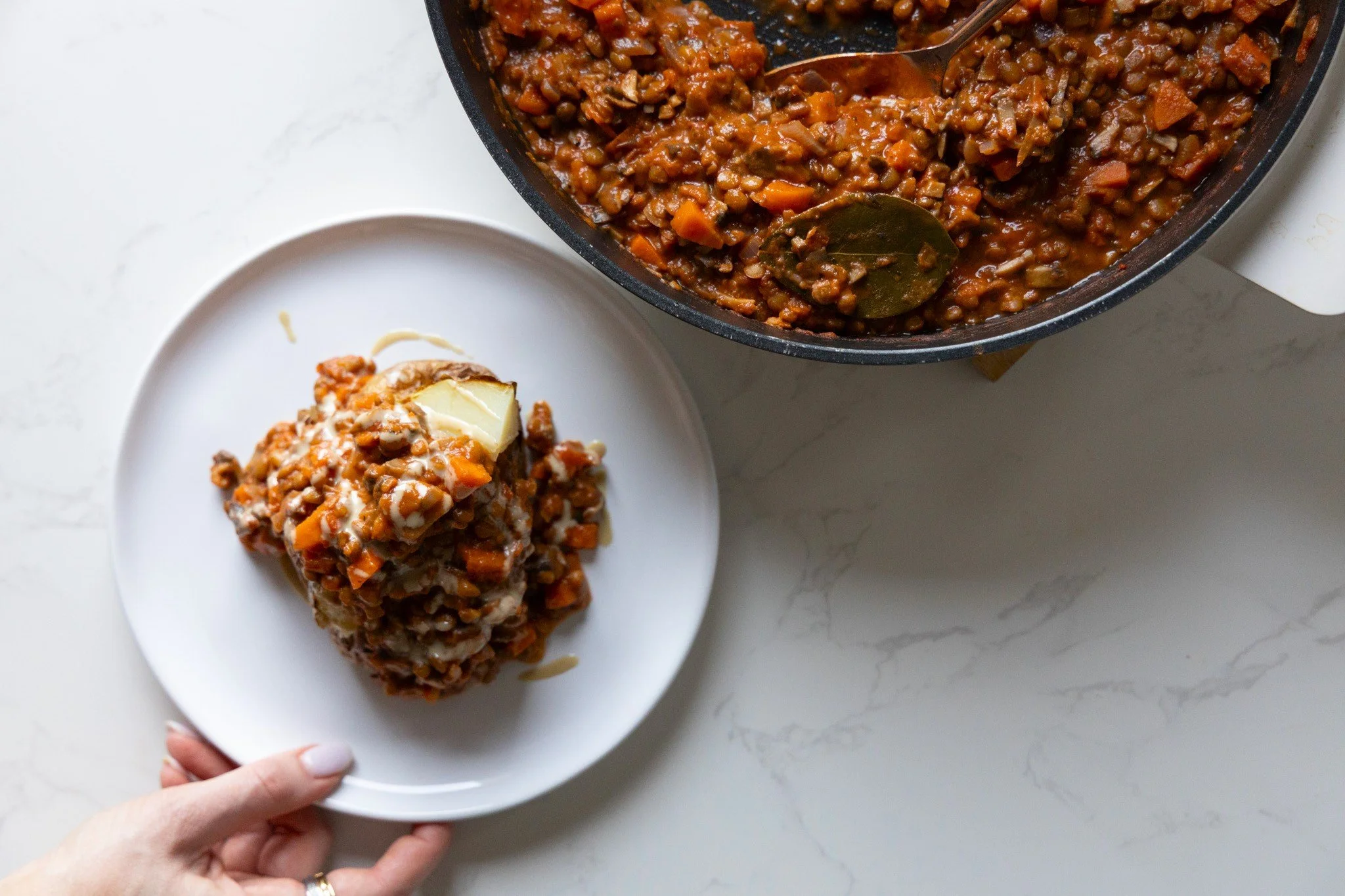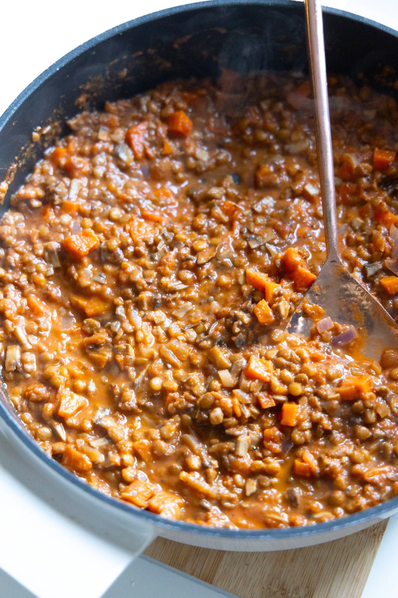 Lentils are underrated. They are high in protein, high in fibre and they add the perfect texture to a delicious vegan ragu like this one. It’s hearty, warming and cosy — just want you want after a long day at your desk. Serve with a slice of bread or your favourite wholegrain spaghetti and your balanced dinner is ready for you.